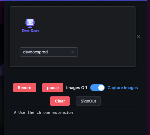 Optionally if you want so set up the chrome extension to push to your custom repo you can set it up [here](/docs/Integrate Dev-Docs with a Custom Docs Repo.md). However we recommend you start simple first just to get going.