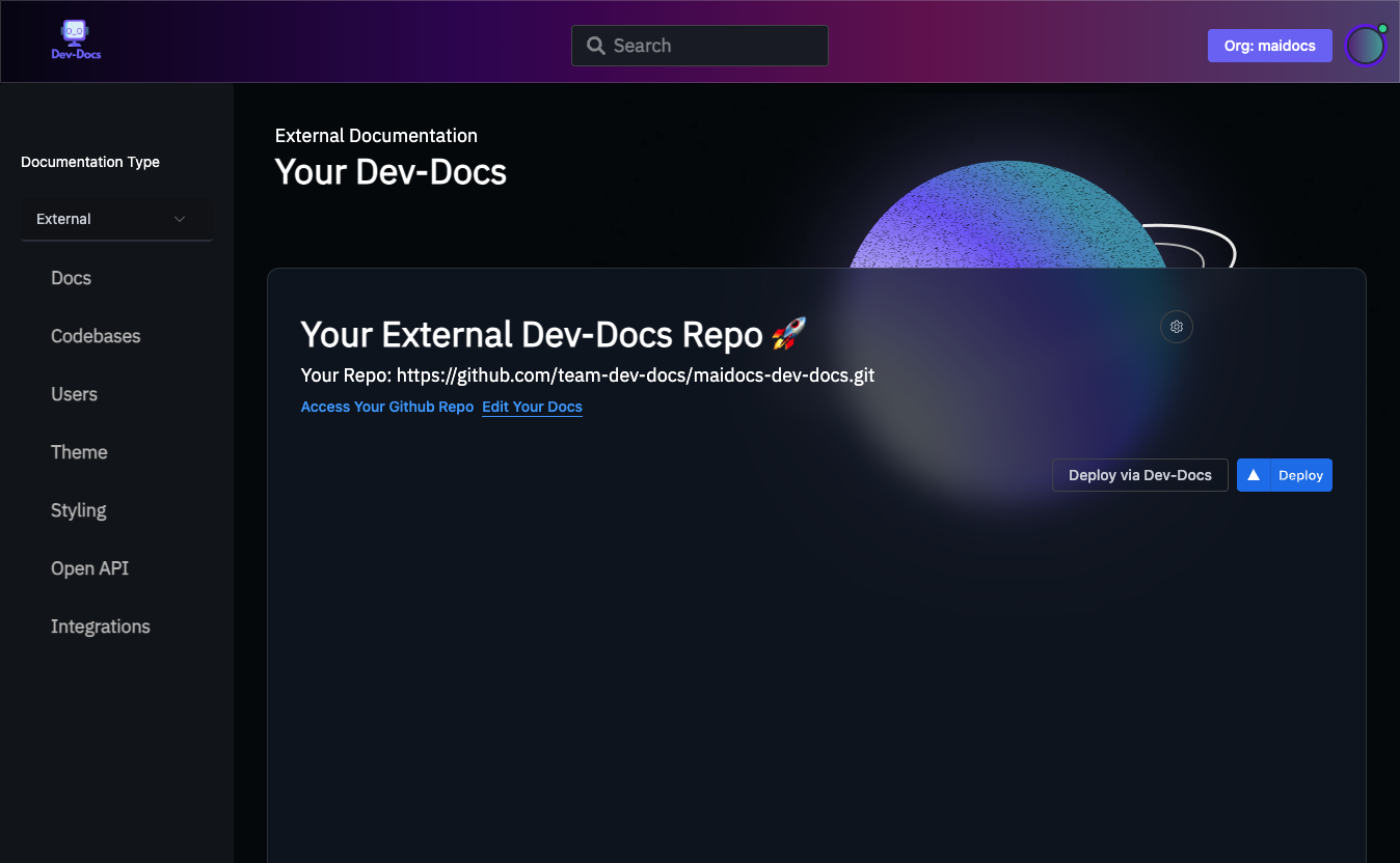 Sign into Dev-Docs and go to your external docs dashboard.