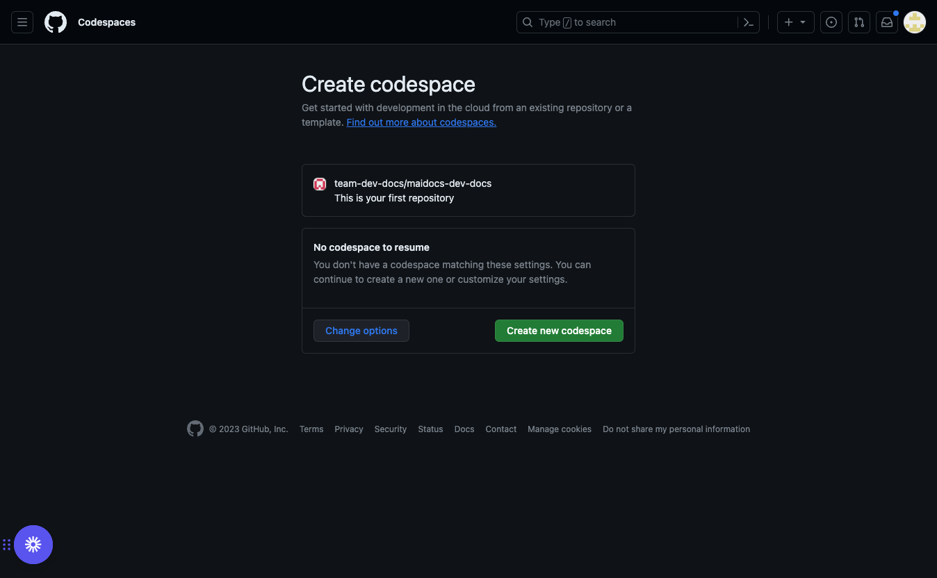 Create a codespace by clicking new codespace button.